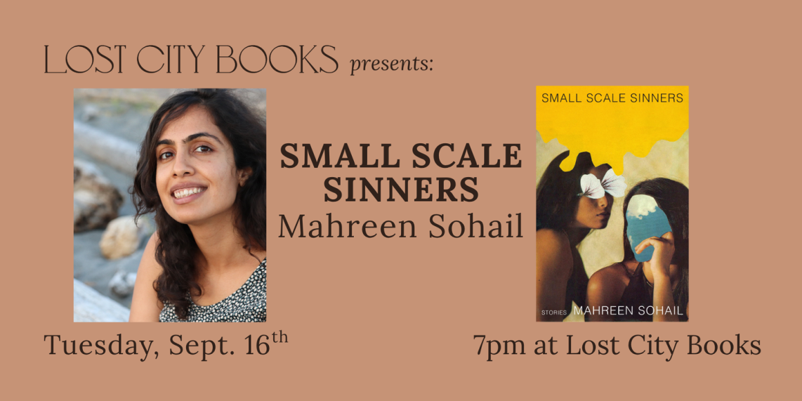 Join Mahreen Sohail for a reading and conversation with John Kim to celebrate the publication of Small Scale Sinners at Lost City Books in Washington, DC.